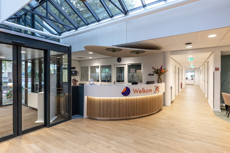 Deze voormalige verpleegstersflat ademt sinds de renovatie een frisse, warm-zakelijke sfeer uit. De behandelruimtes zijn keurig en functioneel ingericht.