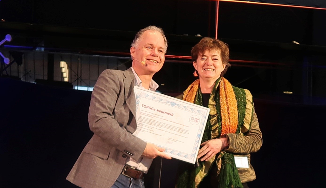 Het TOPGGz-keurmerk werd officieel uitgereikt door Monique van Bueren, senior adviseur van Stichting Topklinische GGz. “Het voor de tweede keer behalen van deze certificering is een grote prestatie. De tweede keer moet je bewijzen dat je weer een ontwikkeling hebt doorgemaakt en dat heeft het team van PersonaCura overtuigend laten zien. Met wetenschappelijk onderzoek en kennisdeling draagt PersonaCura niet alleen bij aan de ggz maar ook aan de velden eromheen. Hiermee bieden zij een grote groep cliënten weer hoop en perspectief op herstel. Daarom kennen wij het keurmerk weer van harte toe.”